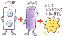 成分の異なる防虫剤を一緒に使うと、液化してシミをつくることがあります。補充するときは必ず同じ種類の防虫剤を。 |