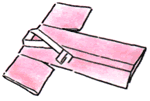 肩山を左にして平らに広げ、前身頃を重ね合わせ、胸ひもがついている場合はきちんとたたんでおく。