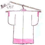 脱いだきものは半日ぐらい衣紋掛けに掛け、汗の湿気を取ります。 |