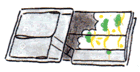 二つ折りにして背紋に紋紙をあてる。収納場所に合わせ、三つ折りのびょうぶだたみにすることもある。 |