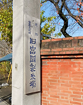 左・正門を入ってすぐの東繭倉庫。幅12.3メートル、長さ104.3メートルの堂々たる煉瓦造りに圧倒される。