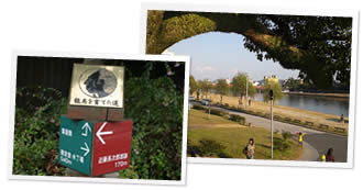生家周辺には、龍馬の少年時代の足跡がたくさんあります。自宅近くを流れる鏡川は、子供の頃の龍馬にとってかっこうの遊び場でした。「どうせ濡れるのだから」と雨の日も川で泳いでいたとか。川沿いにはたびたび洪水をおこす鏡川の防水のための石碑が建ち、近隣には龍馬が剣術に励んだ日根野道場跡、土佐勤王党の近藤長次郎や、龍馬に世界への目を見開かせた河田小龍の屋敷などもありました。龍馬が泳いだ鏡川の河川敷は市民の憩いの場として親しまれています。