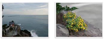 太平洋を一望する桂浜公園の丘陵に、海に突き出るように建つ龍馬記念館。龍馬の生涯や人物像を多数の資料を駆使して紹介しています。