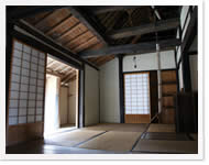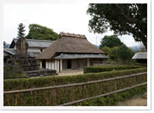 - 弥太郎の生家は約30坪の茅葺平屋建て。地元のボランティアが美しく土用竹の生垣を刈り込み、保存・整備し、公開されています。(無料)