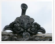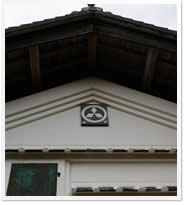 岩崎家の家紋、三階菱の付いた土蔵の鬼瓦。