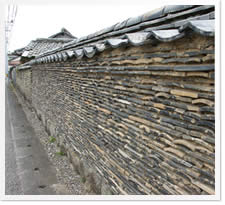 安芸は焼き物の町。不要になった瓦を再利用した塀が美しい。