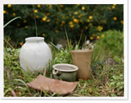 文政12年(1829年)頃、五藤氏が京都から陶工を招き、良質の粘土を利用した陶芸を地元の人々に伝習していったといわれている内原野焼。現在でも4軒の窯元が素朴な味わいの焼ものを作っています。