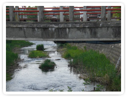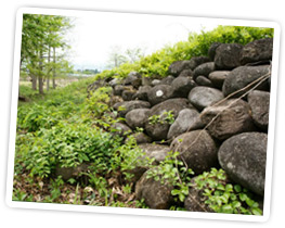 兼続の指揮で松川左岸に治水のために造った堤防。農業用水が不足を補うために、兼続は堰や用水路の建設に力を注いぎました。