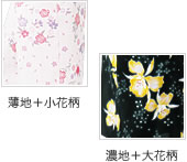 かわいらしさ重視でいくなら「薄地」+「小花柄」。「濃地」+「大花柄」なら、落ち着いた色合いでも華やかに。